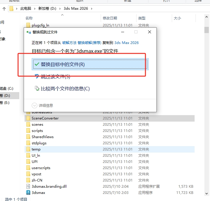 - 返回解压的文件夹,找到替换文件夹打开。