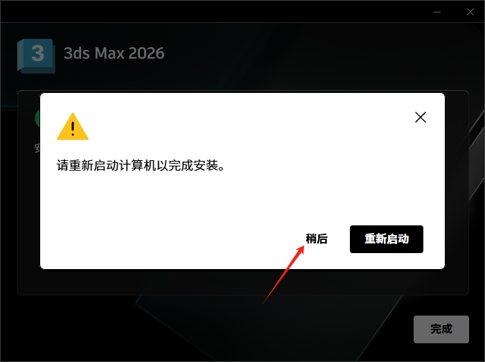 - 如果提示重启,点击“稍后”
